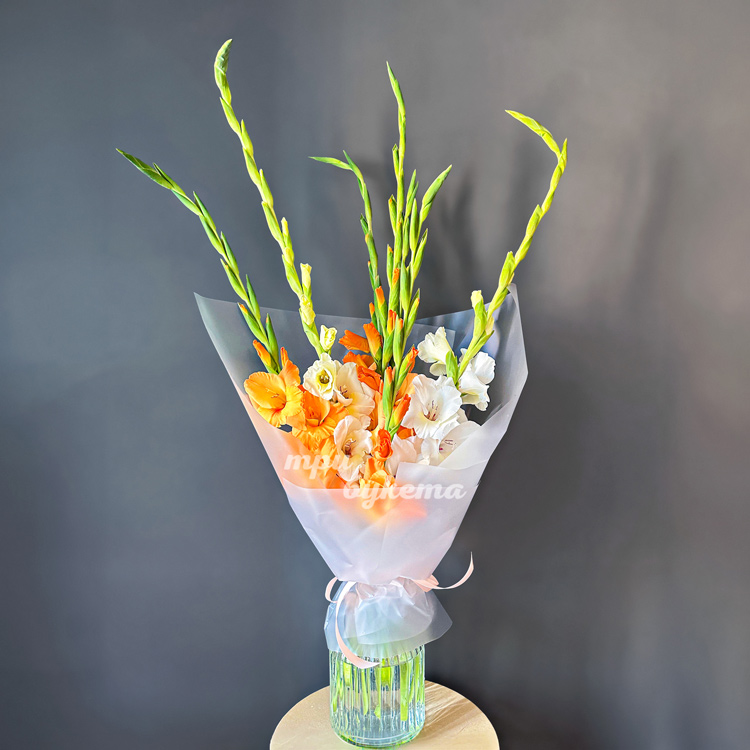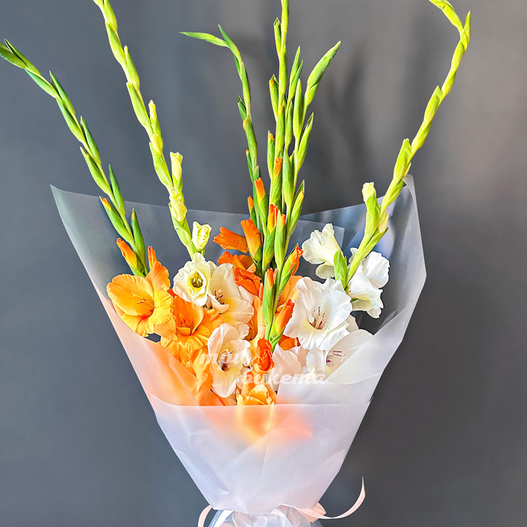 Букет из 7 разноцветных гладиолусов