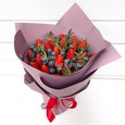 Букет из красных роз и клубники