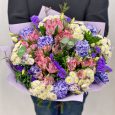 Букет из роз, эустом и тюльпанов