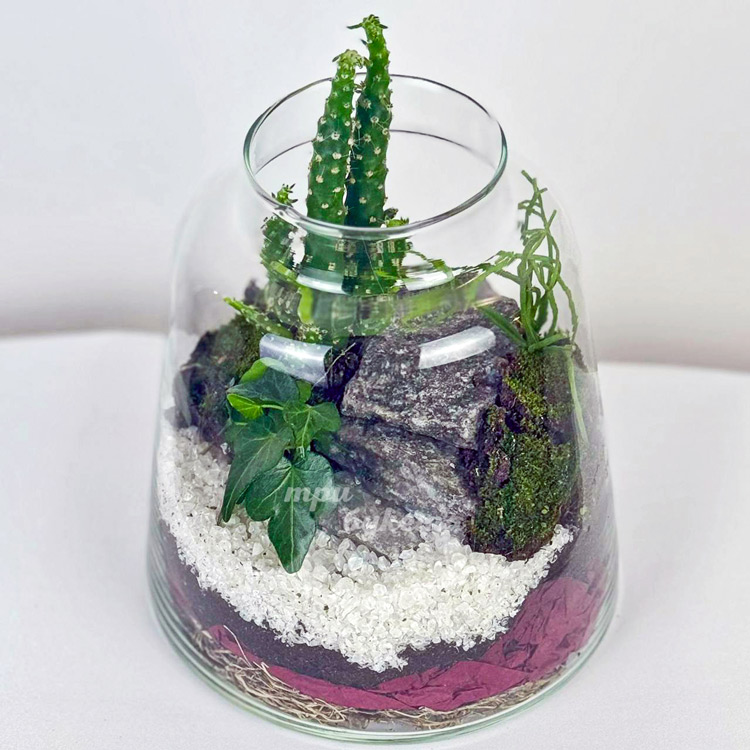 Флорариум с кактусами на камнях