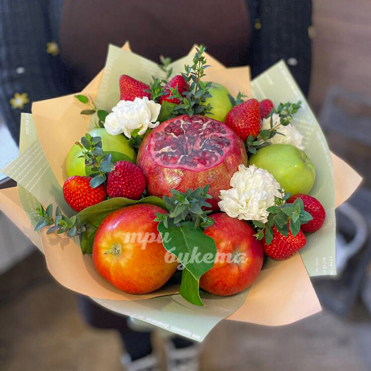 Фруктовый букет из яблок и гвоздик