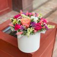 Коробка гортензий, эустом и французских роз