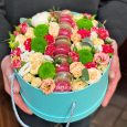 Коробочка с розовыми розами и эвкалиптом