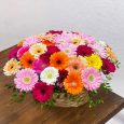 Корзина ярких роз с гипсофилой и лимониумом