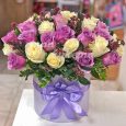 Кустовые оранжевые розы в коробке