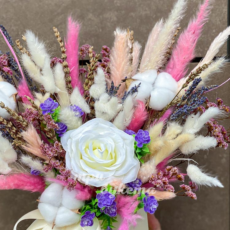 Лаванда и роза в шляпной коробке