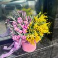 Розовые пионовидные розы в коробке