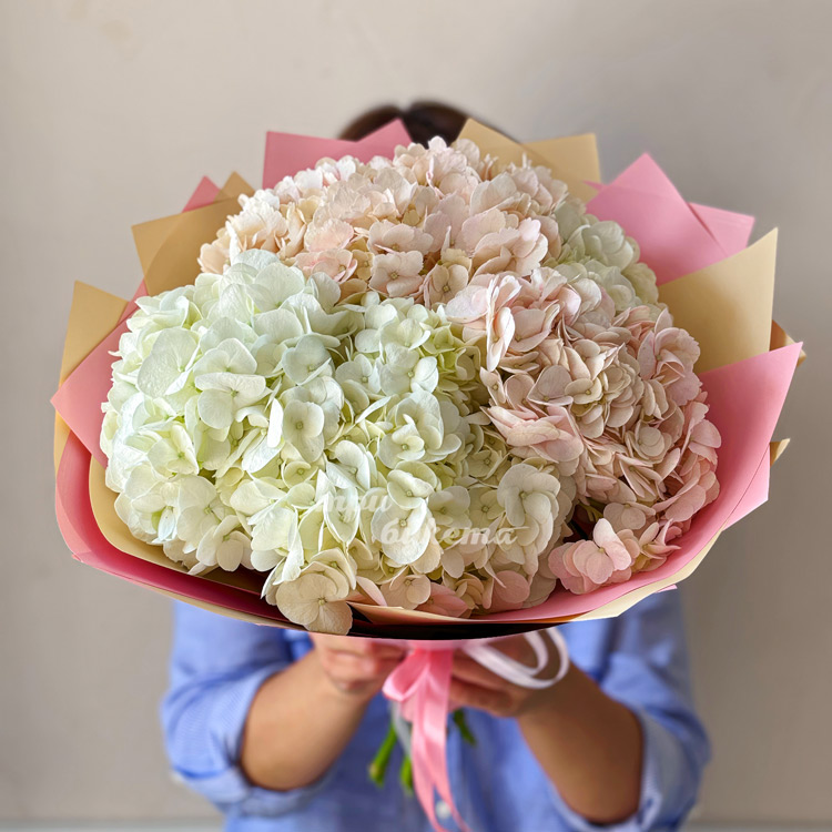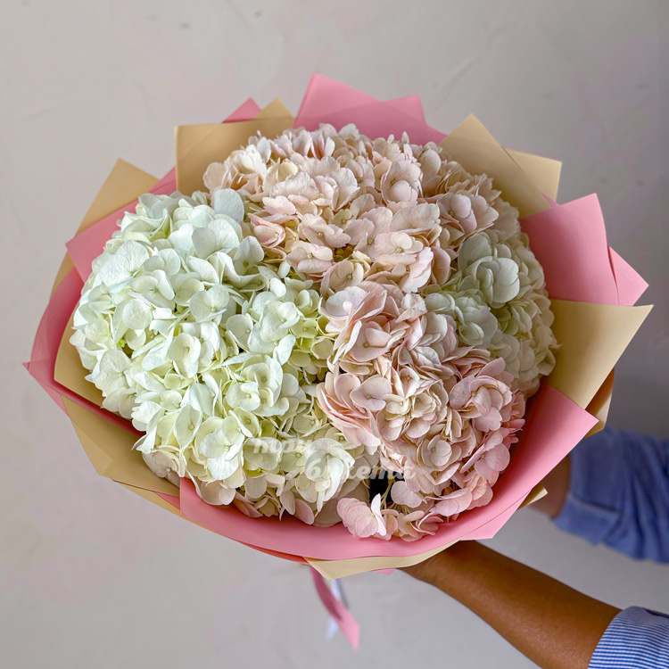 Розовый букет из 5 гортензий