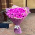 Розовый букет кустовых роз и хризантем