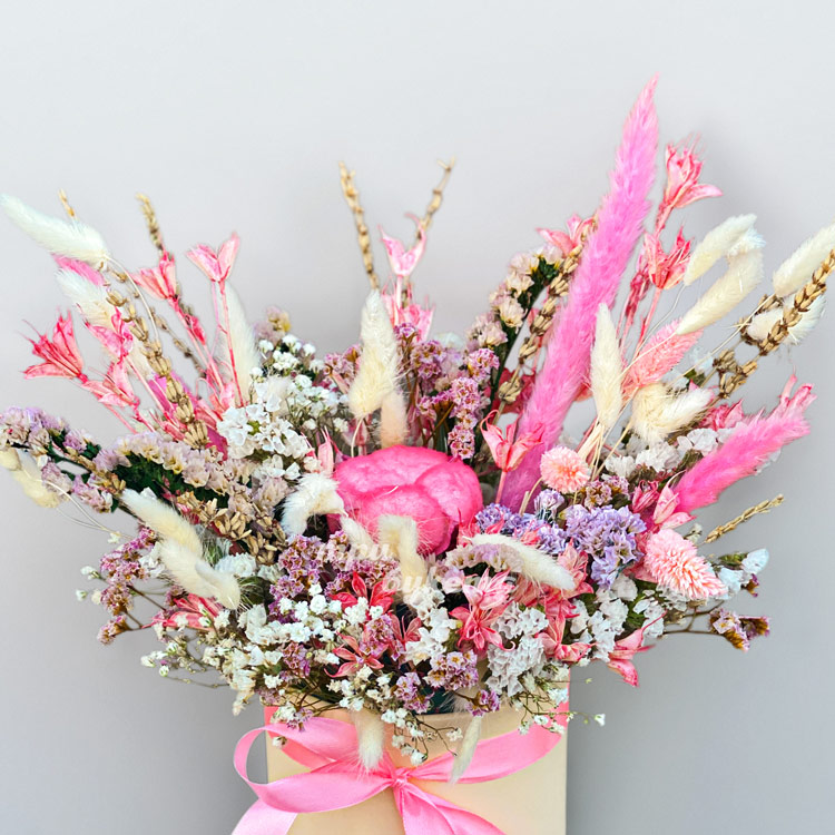 Сухоцветы и хлопок в коробке